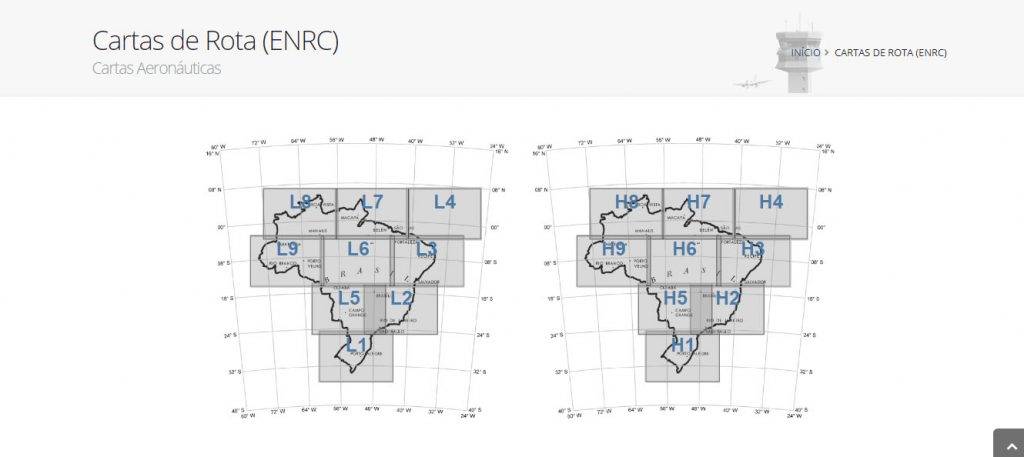 A segunda opção no menu são as Cartas de Rota, aqui temos uma divisão entre as cartas de Baixa (Low) e as de Alta (High). Sendo que elas vão da numeração 1 a 9, de acordo com as regiões do Brasil.
