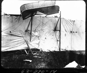 No dia 17 de setembro desse mesmo ano, na presença de oficiais do exército e mais de 2.000 espectadores, um jovem oficial de 26 anos chamado Thomas Selfridge acompanharia Orville em um desses voos. Tudo ocorria bem até que após alguns minutos de voo ouviu-se um barulho em um dos dois motores, Orville olhou para trás, mas não pode identificar o que tinha ocorrido, por precaução decidiu retornar ao local de decolagem, porém logo em seguida ouviu um barulho mais alto acompanhado de uma intensa vibração, causada pela quebra da hélice de um dos motores.