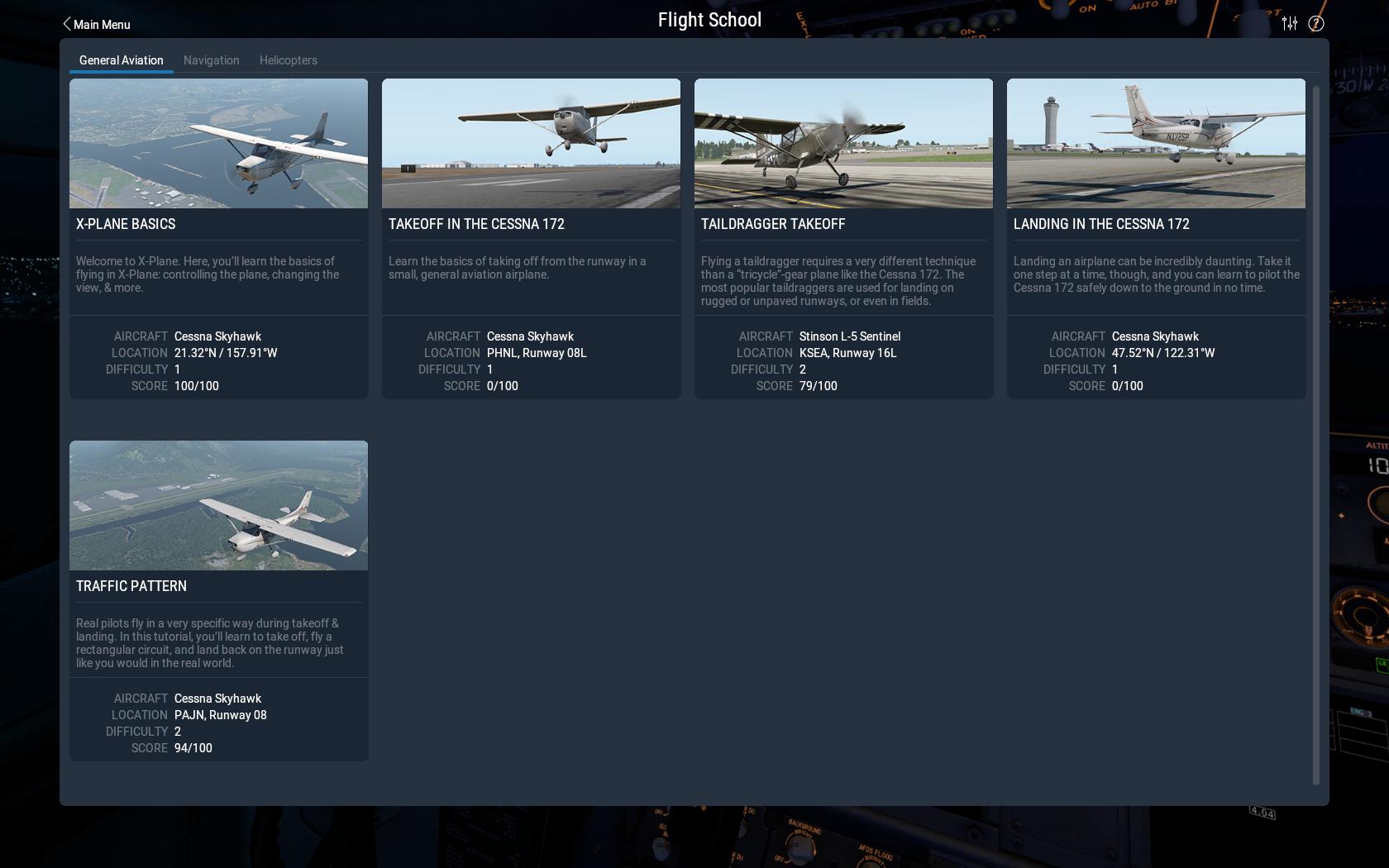 Haverá também aulas básicas de tráfego aéreo, navegação VOR, aproximação ILS, pouso e muitas outras que com certeza vão te ajudar muito. A última parte é focada em helicópteros, caso este seja o seu interesse, sugerimos muito que as faça.